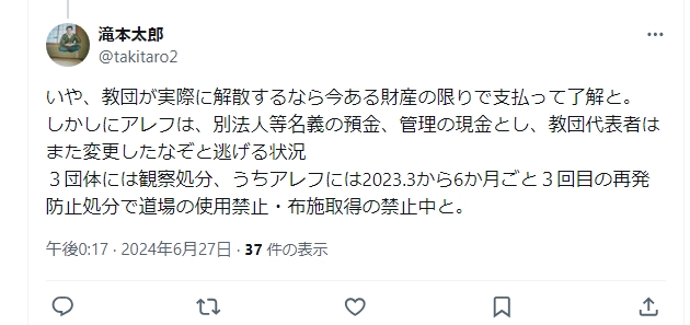 いや、教団が実際に解散するなら今ある財産の限り支払って了解と。