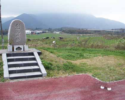 第一上九は立派な公園になっている。慰霊碑の背景には放牧された牛たちが牧草を食べているのどかな風景が広がる。あの牛の前生は・・・?